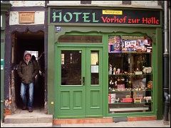 Die Touristinformation Quedlinburg "Quedlinburg Touristbüro" ist die Rezeption des Hotels "Vorhof zur Hölle" und bietet darüber hinaus Souvenirs und Stadtführungen an.